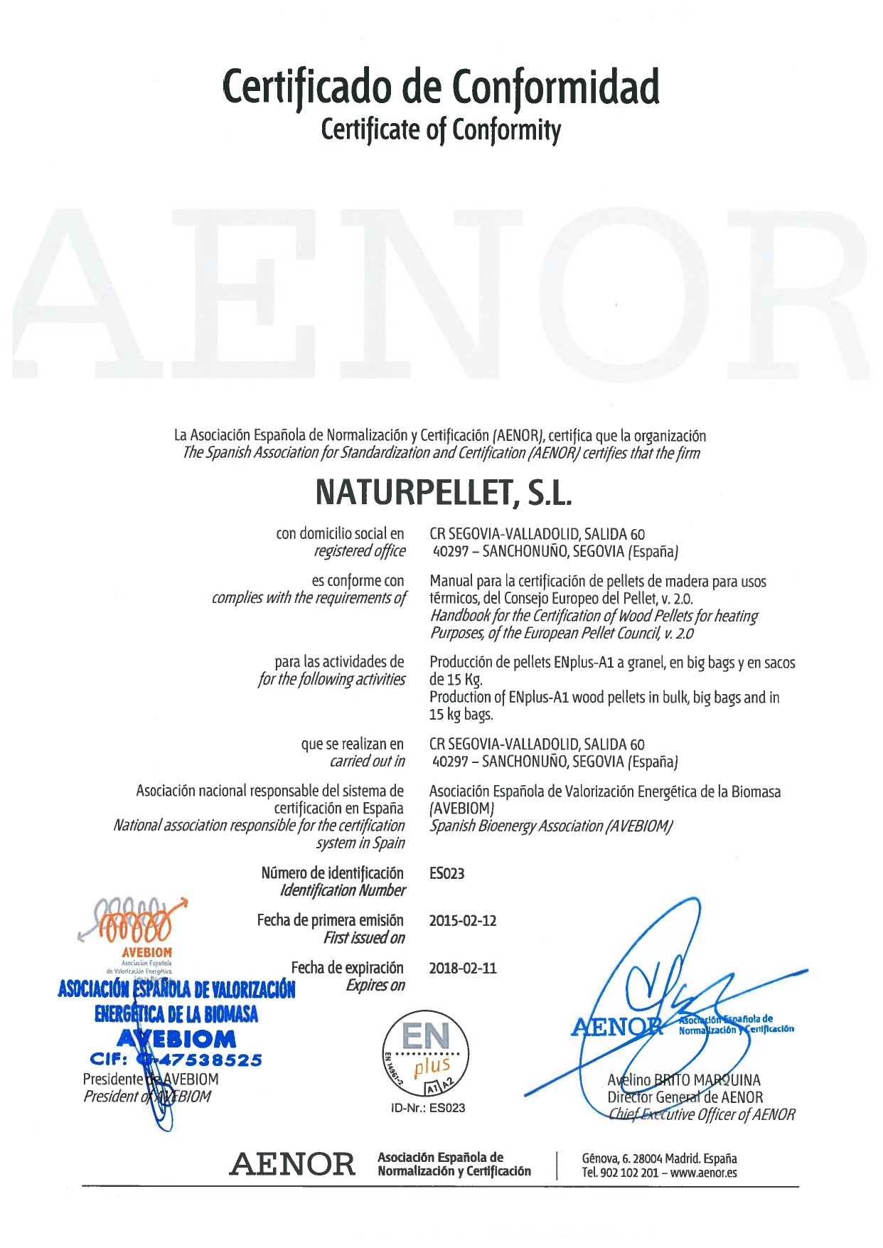 1 palés (77 sacos - 1 5 kg) de pellets NATURPELLET